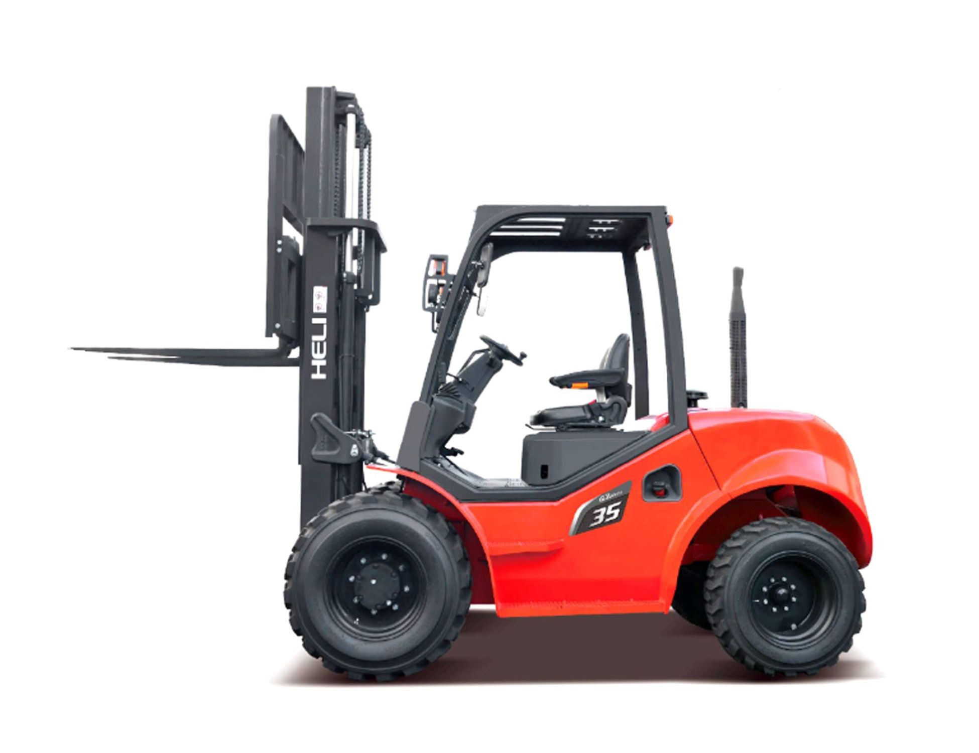 Внедорожный вилочный погрузчик с приводом на 4 колеса (2WD) действительно способен работать в самых сложных на строительных площадках и  в сельском хозяйстве, на неровной местности. Максимальная грузоподъемность до 3500 кг при центре нагрузки 500 мм.